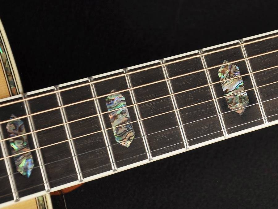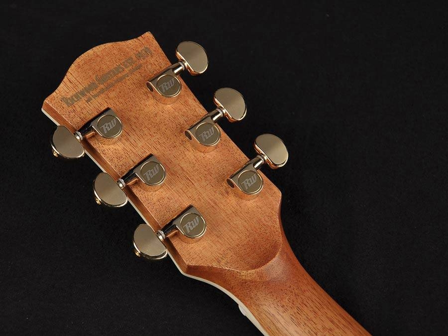 Die Gitarren sind ausgestattet mit knöchernen Einlagen, einem Zwei-Wege-Halsstab, baumwollüberzogenen X-Streben, Mahagoni Bodenstreben,